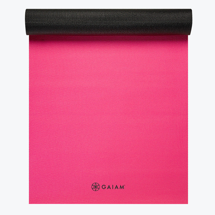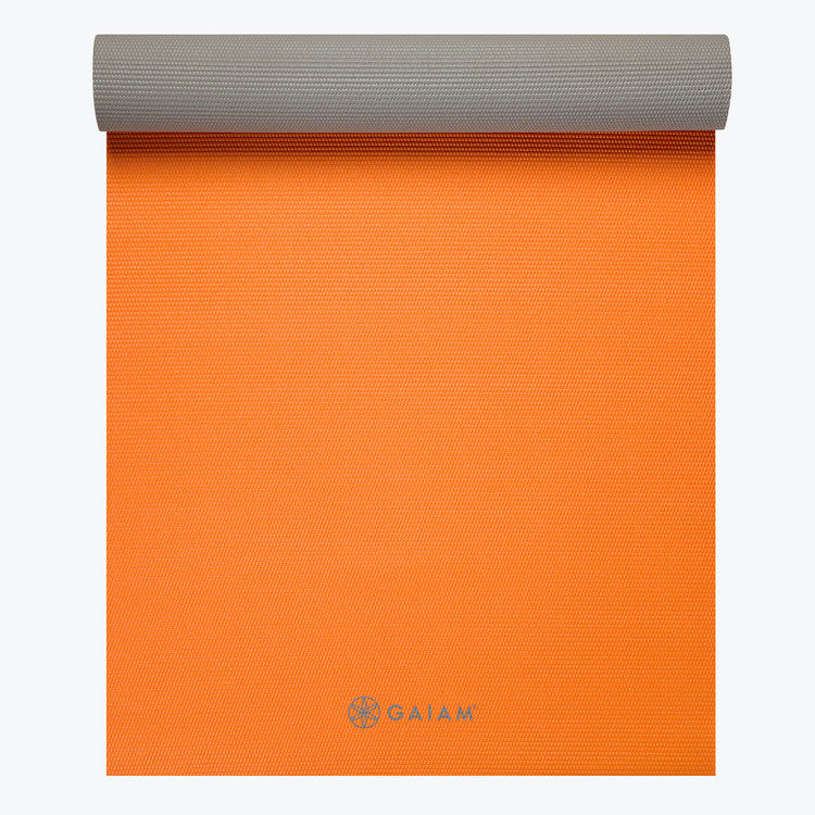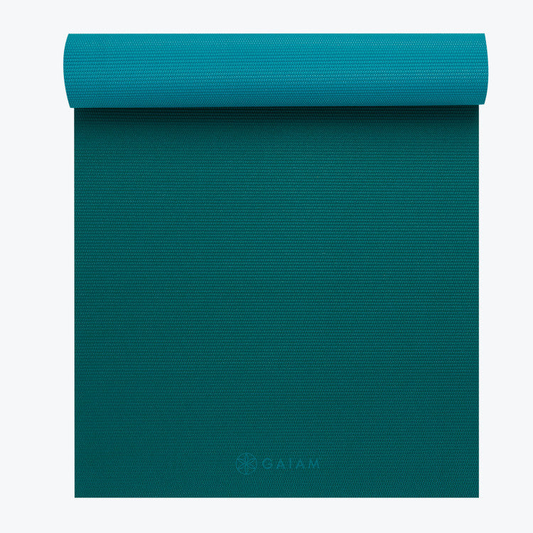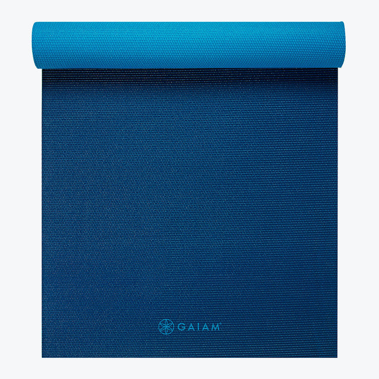 • These Premium 2-Color Yoga Mats provide a 5mm stable non-slip surface for your practice. Each mat is reversible, so you can choose which color you want to practice on. Manufactured free of latex and the top six most harmful phthalates and all come with Gaiam's lifetime guarantee.
