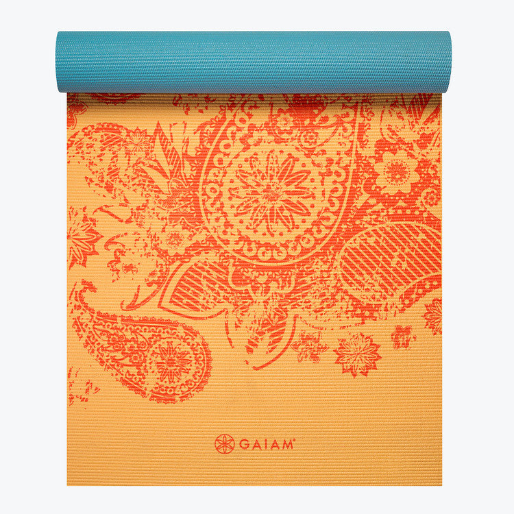 Choose a lively elephant on a serene sea of blue or an ancient paisley motif on a vivid yellow backdrop, letting you mix it up for every use. Available exclusively from Gaiam in a premium 5mm thickness that offers cushioned support and stability. The texture of this mat is made from no slip, grippy material, keeping you in place during any pose. Made without the six most harmful phthalates, this mat is a healthier choice for both you and the planet!