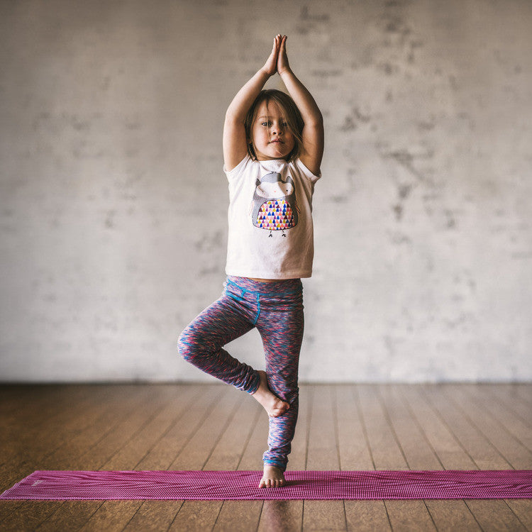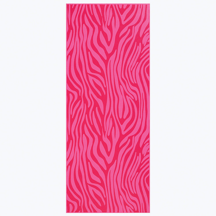 Set your inner animal free with this bright and sassy kid-sized pink zebra yoga mat. With a grippy, no-slip surface they will stay put during any tiger, lion or downward facing dog pose. The 3mm of cushioning keeps the little yogis comfortable and calm during savasana. This mat is also latex and 6P free, and comes with our lifetime guarantee. Ideal for ages 5-8.