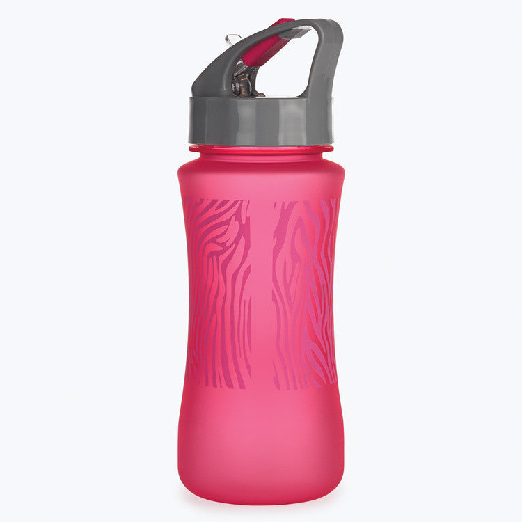 Stay hydrated and full of personality with this easy to drink from, spill resistant pink zebra water bottle. The 18oz. BPA-free plastic water bottle features a flip-straw closure, wide-mouth screw top and leak-proof design. Dishwasher safe.