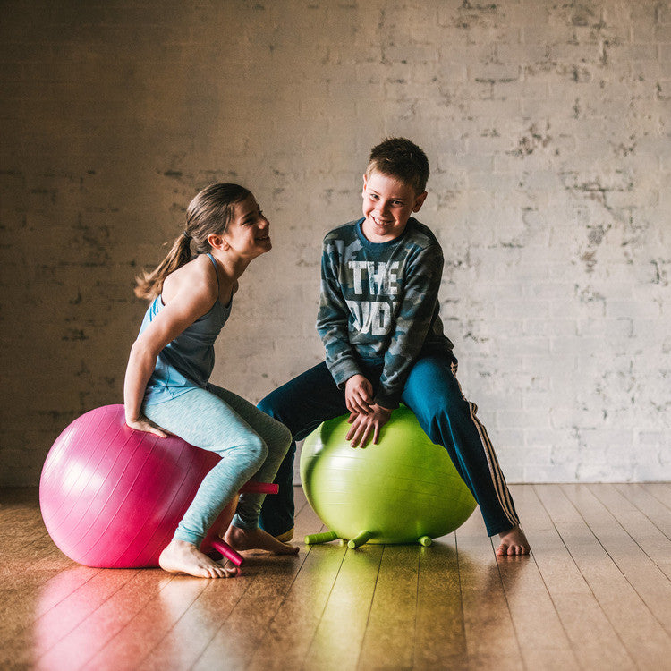 Sitting was never so much fun! Our kid-sized 45cm inflatable ball with built-in no-roll stabilizing legs encourages healthy posture while keeping the body active and the mind engaged. Ideal for ages 5-7. Includes an easy inflation pump.