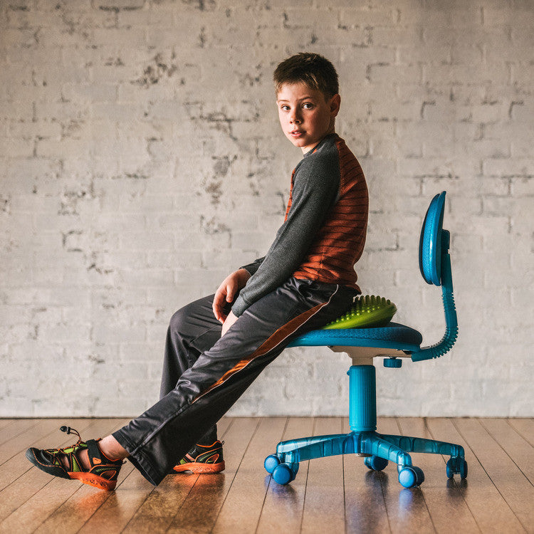Let your little ones get the wiggles out in any seat with this kid-sized Jr. Balance Cushion. Not only does this cushion turn any chair into an active seat, but it also encourages kids to learn and practice healthy posture while benefiting from active sitting. Cushion features a bright and fun color with a textured surface that stimulates blood flow. Includes an inflation needle for customized firmness. Ideal for ages 5 to 12.